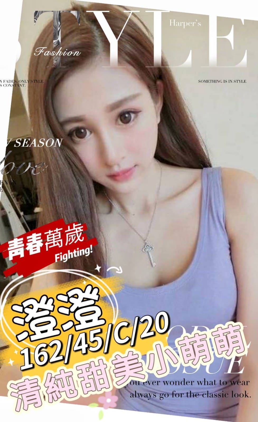 | 澄澄 | 162.45.C.20 | 按摩,69,共浴,LG(舌吻)依氣氛衛生而定,可親嘴,無套吹,品鮑 |